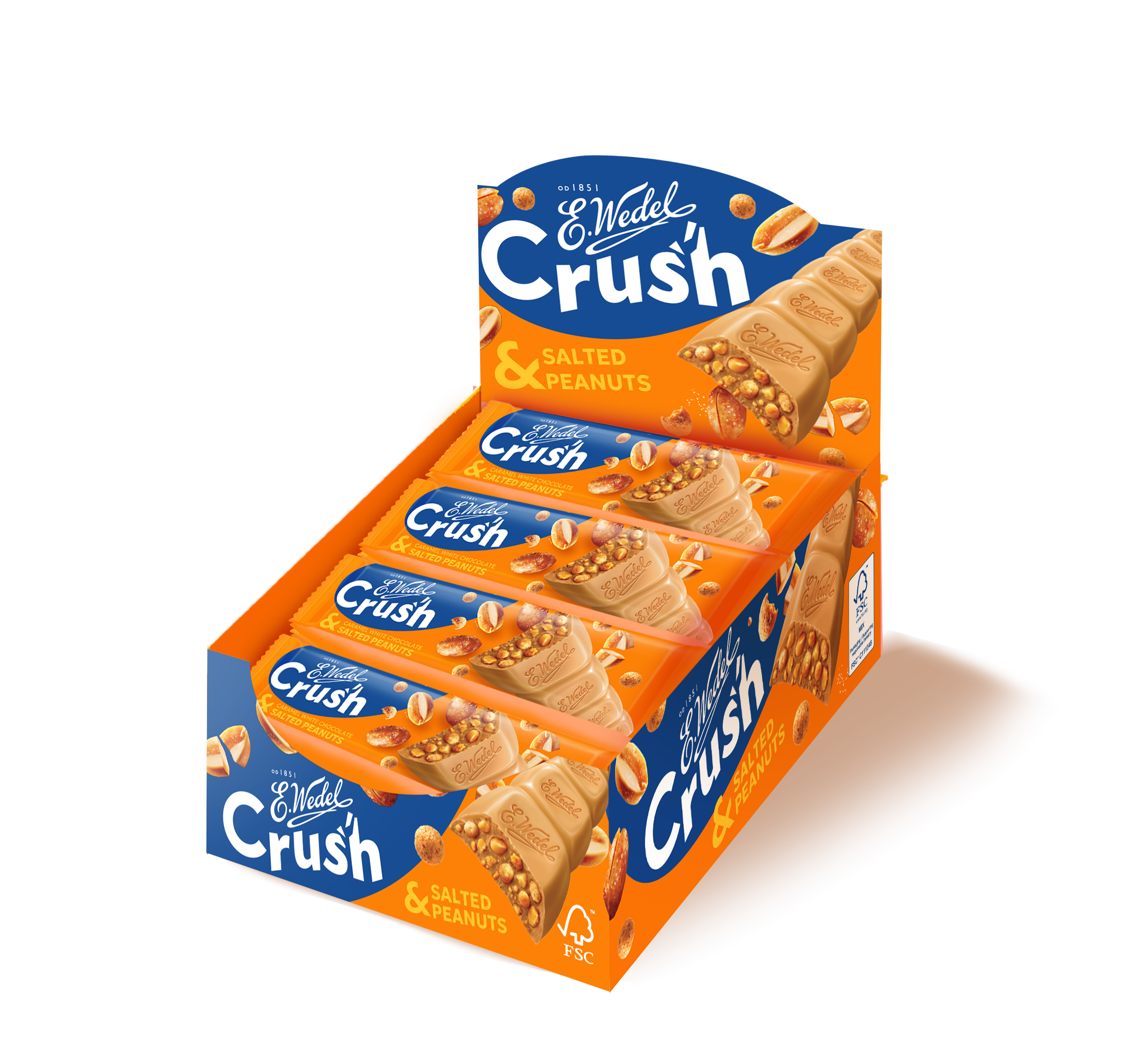 Crush to zupełnie nowy baton czekoladowy od Wedla w wielu wyrazistych smakach. Łączy autentyczną wedlowską czekoladę i chrupiące dodatki jak jeszcze żaden baton w Polsce. Efekt? Multisensoryczna przyjemność, którą trzeba poczuć. I się zakochać!