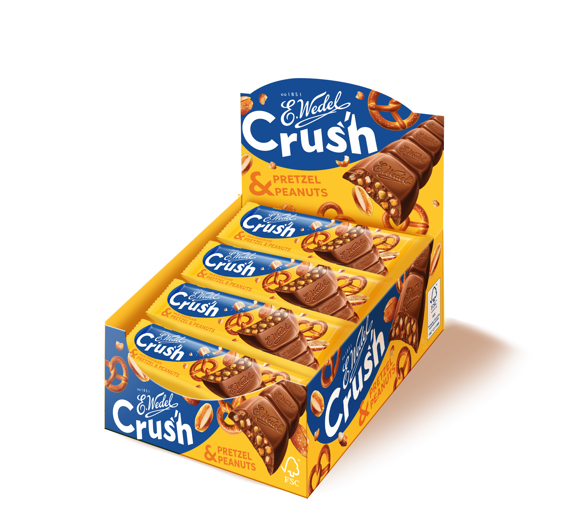 Crush to zupełnie nowy baton czekoladowy od Wedla w wielu wyrazistych smakach. Łączy autentyczną wedlowską czekoladę i chrupiące dodatki jak jeszcze żaden baton w Polsce. Efekt? Multisensoryczna przyjemność, którą trzeba poczuć. I się zakochać!