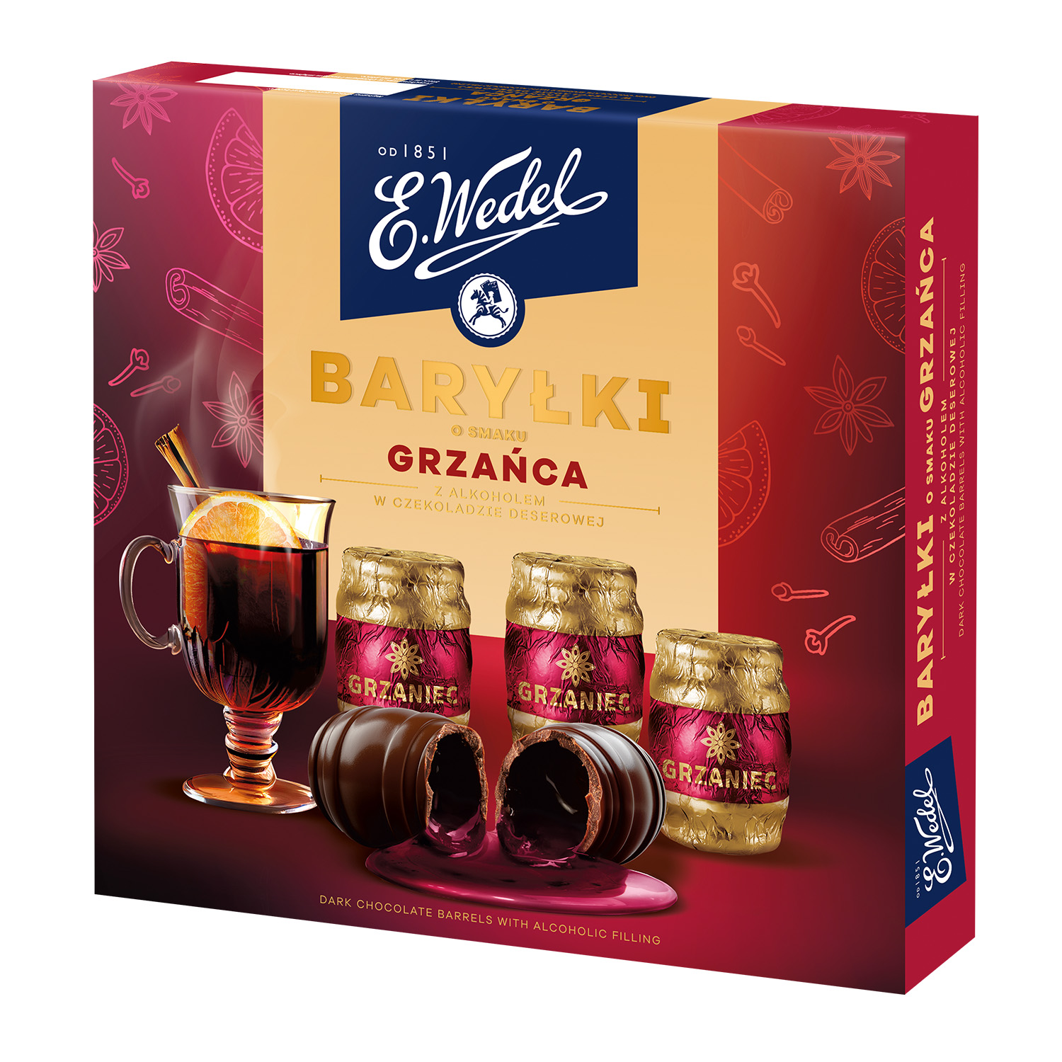 Baryłki o smaku grzańca z alkoholem w czekoladzie deserowej 200 g E. Wedel