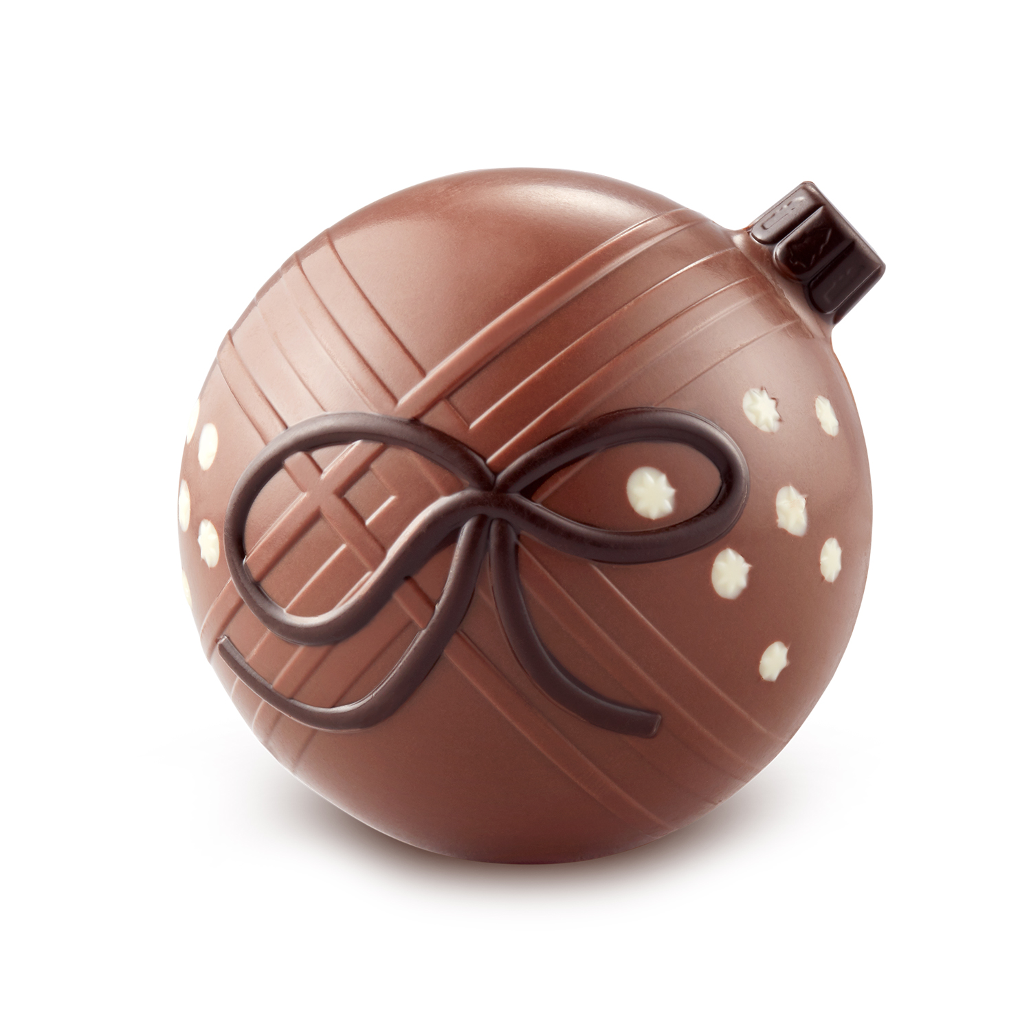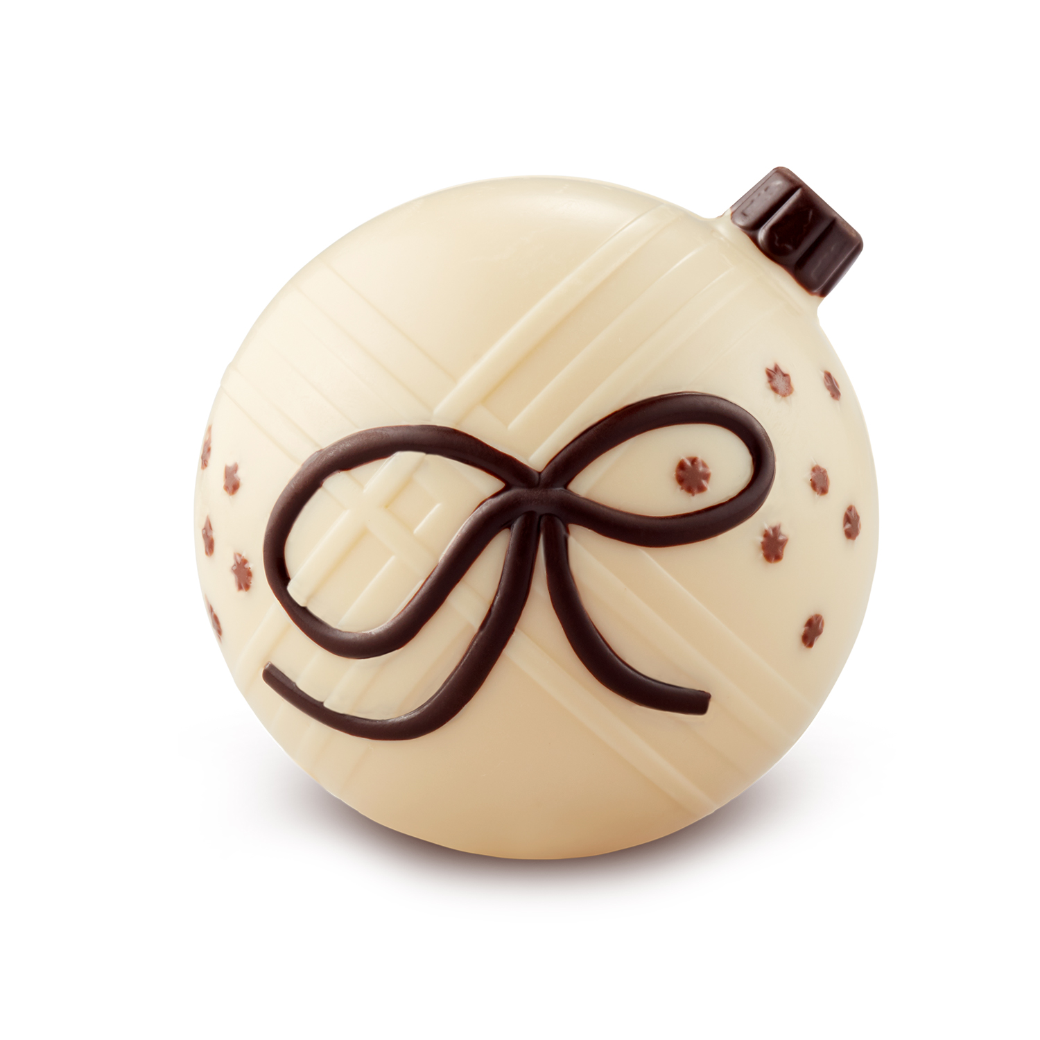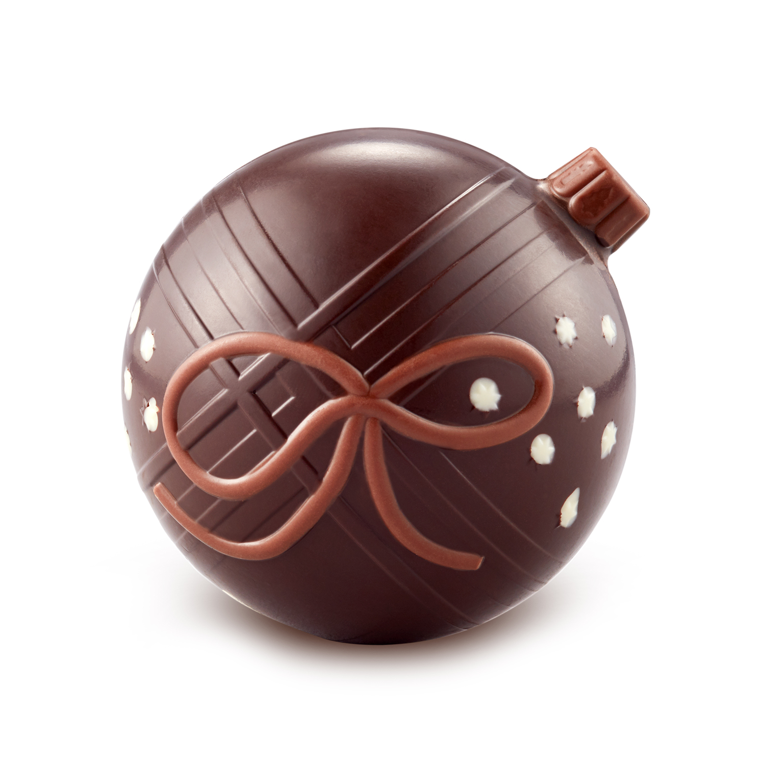 Ręcznie dekorowana figurka w kształcie bombki wykonana w zależnie od wzoru*: z czekolady gorzkiej – udekorowana czekoladą mleczną i białą, z czekolady mlecznej – udekorowana czekoladą gorzką i białą, z czekolady białej – udekorowana czekoladą gorzką i mleczną. Zapakowana w elegancki celofanowy woreczek i ozdobiony kokardką w kolorze złota. Idealny jako słodki upominek na Mikołajki i Święta Bożego Narodzenia. Czekoladowe figurki z Pracowni Maestro Czekolady E.Wedel to tworzone z pasją, ręcznie wykonane małe dzieła sztuki. Dzięki swojej unikalności i wyraźnej symbolice są idealnym pomysłem na świąteczny prezent.