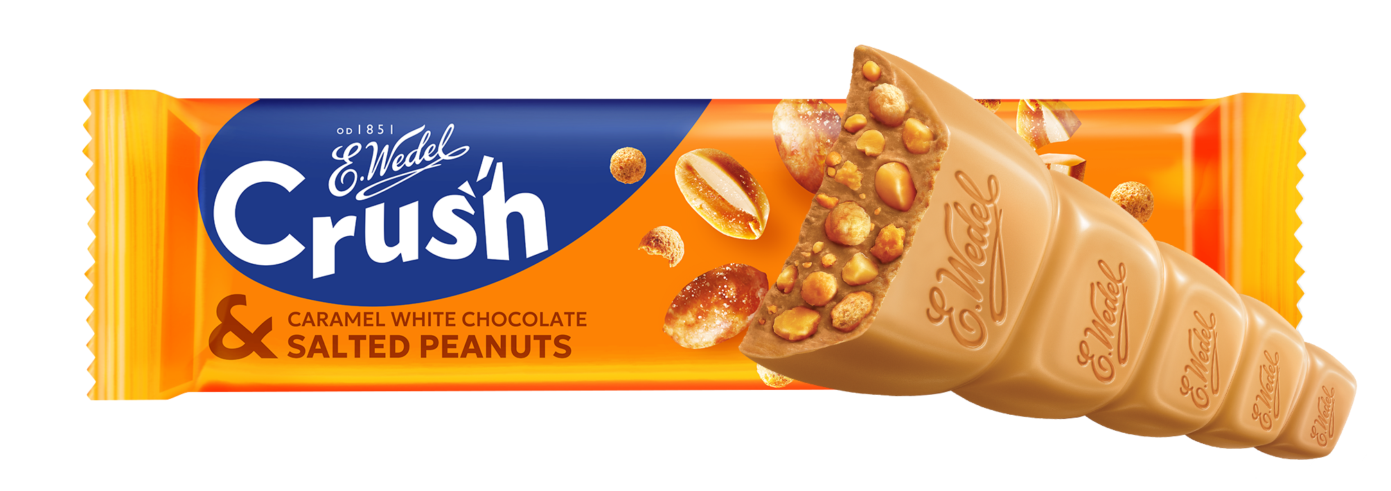 Crush to zupełnie nowy baton czekoladowy od Wedla w wielu wyrazistych smakach. Łączy autentyczną wedlowską czekoladę i chrupiące dodatki jak jeszcze żaden baton w Polsce. Efekt? Multisensoryczna przyjemność, którą trzeba poczuć. I się zakochać!