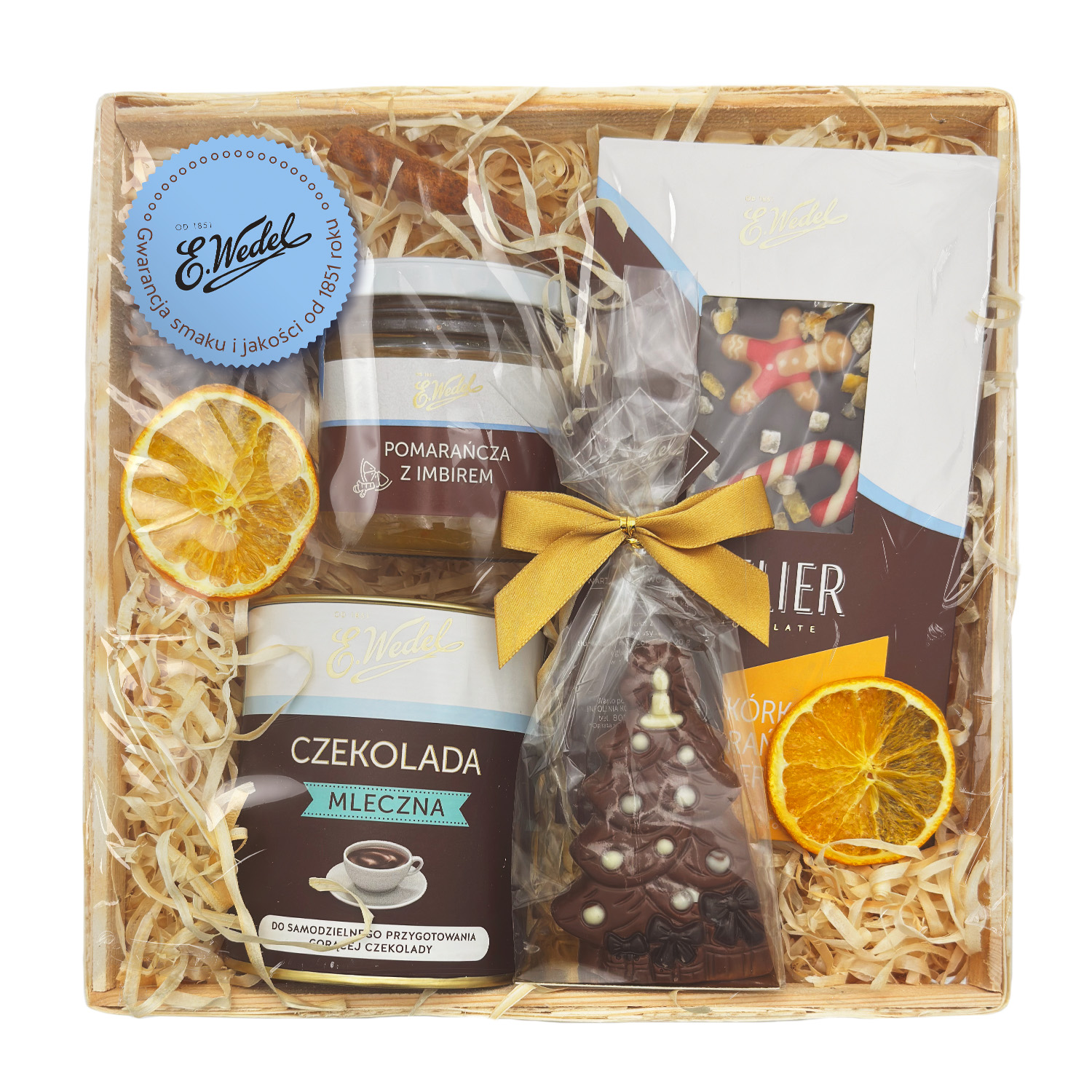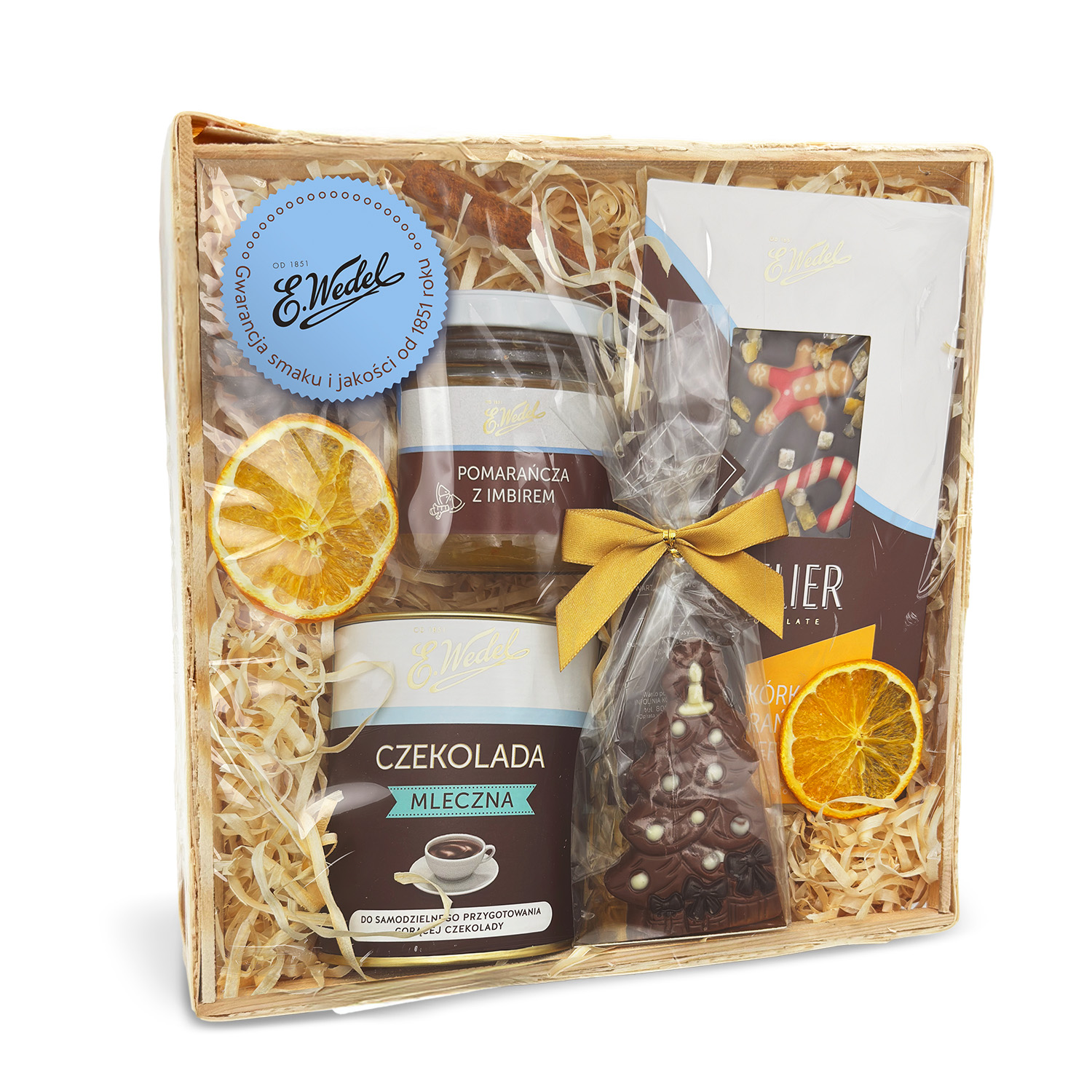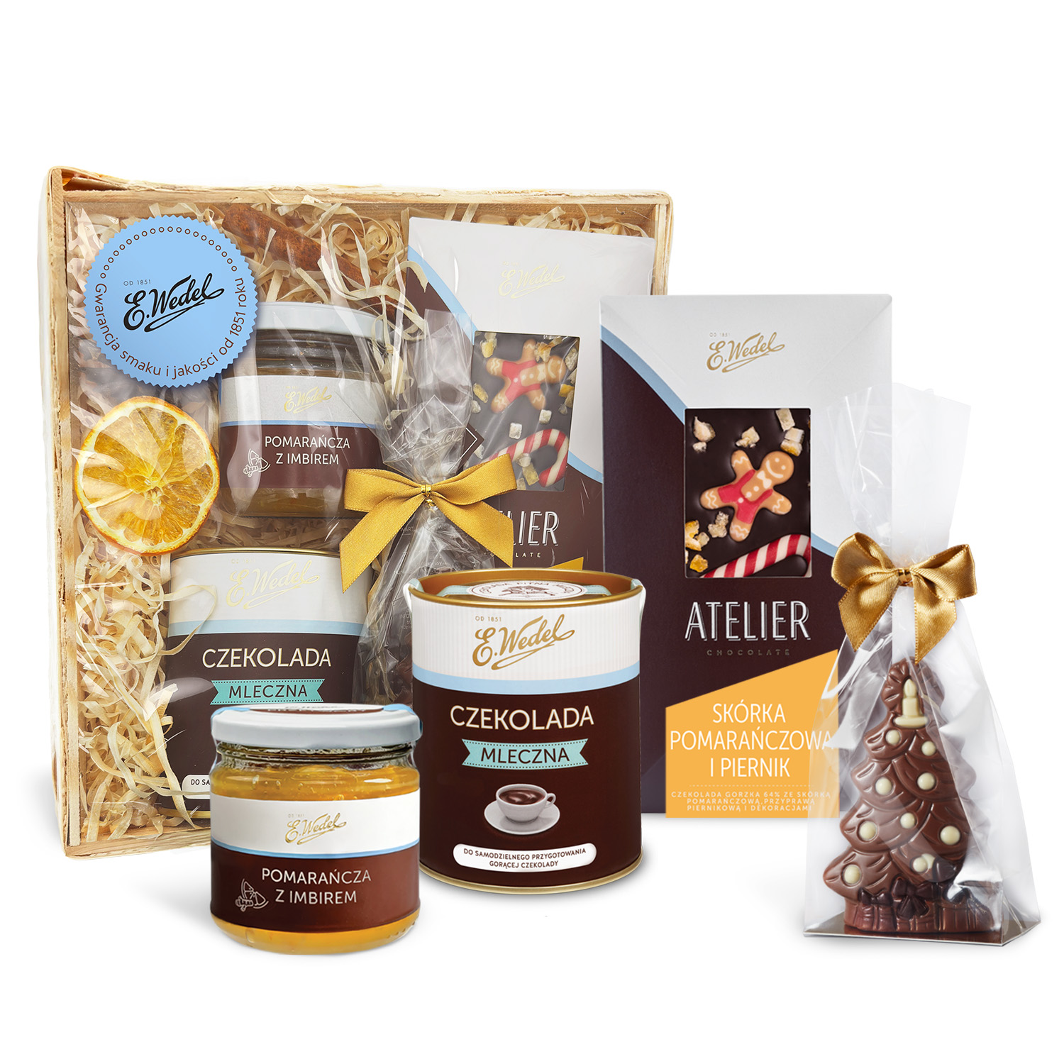 Składniki: Czekolada gorzka (84%) (Miazga kakaowa, Cukier, Kakao o obniżonej zawartości tłuszczu, Tłuszcz kakaowy, Emulgatory: lecytyny sojowe i E476, Aromat), Kandyzowana skórka pomarańczowa (10,5%) (Skórka pomarańczowa, Cukier, Syrop glukozowo-fruktozowy, Regulator kwasowości: E330, Substancja konserwująca: E202, Aromaty), Dekoracja (3,5%) (Cukier, Tłuszcz kakaowy, Mleko pełne w proszku, Emulgator: lecytyny słonecznikowe, Aromat, Tłuszcz roślinny (palmowy, shea), Proszek kakaowy, Barwniki: E120, E172), Przyprawa piernikowa (2%) (Cynamon 55%, Goździki, Kolendra, Gałka muszkatołowa, Imbir, Kardamon, Pieprz czarny). Czekolada: masa kakaowa minimum 64%. Może zawierać orzeszki arachidowe, orzechy, zboża (gluten), jaja.