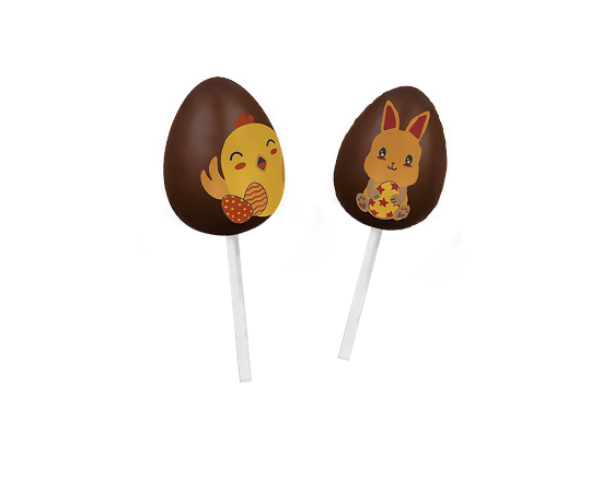 Lizak w kształcie jajka z wizerunkiem zajączka lub kurczaczka, wykonany z czekolady mlecznej E.Wedel z dekoracją. Idealny pomysł na pyszny wielkanocny upominek dla najmłodszych. Pięknie prezentuje się w wielkanocnym koszyczku, czy jako unikatowa i oryginalna ozdoba na świątecznym stole. Zapakowany w torebkę celofanową. Wielkanocne figurki z czekolady E.Wedel to małe dzieła sztuki, tworzone z pasją przez zespół wykwalifikowanych cukierników, zostały wykonane ręcznie w Pracowni Ręcznej Produkcji Rarytasy.