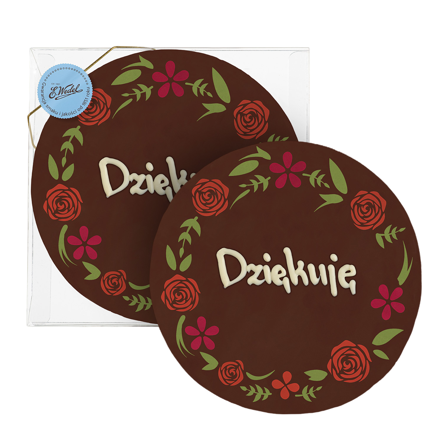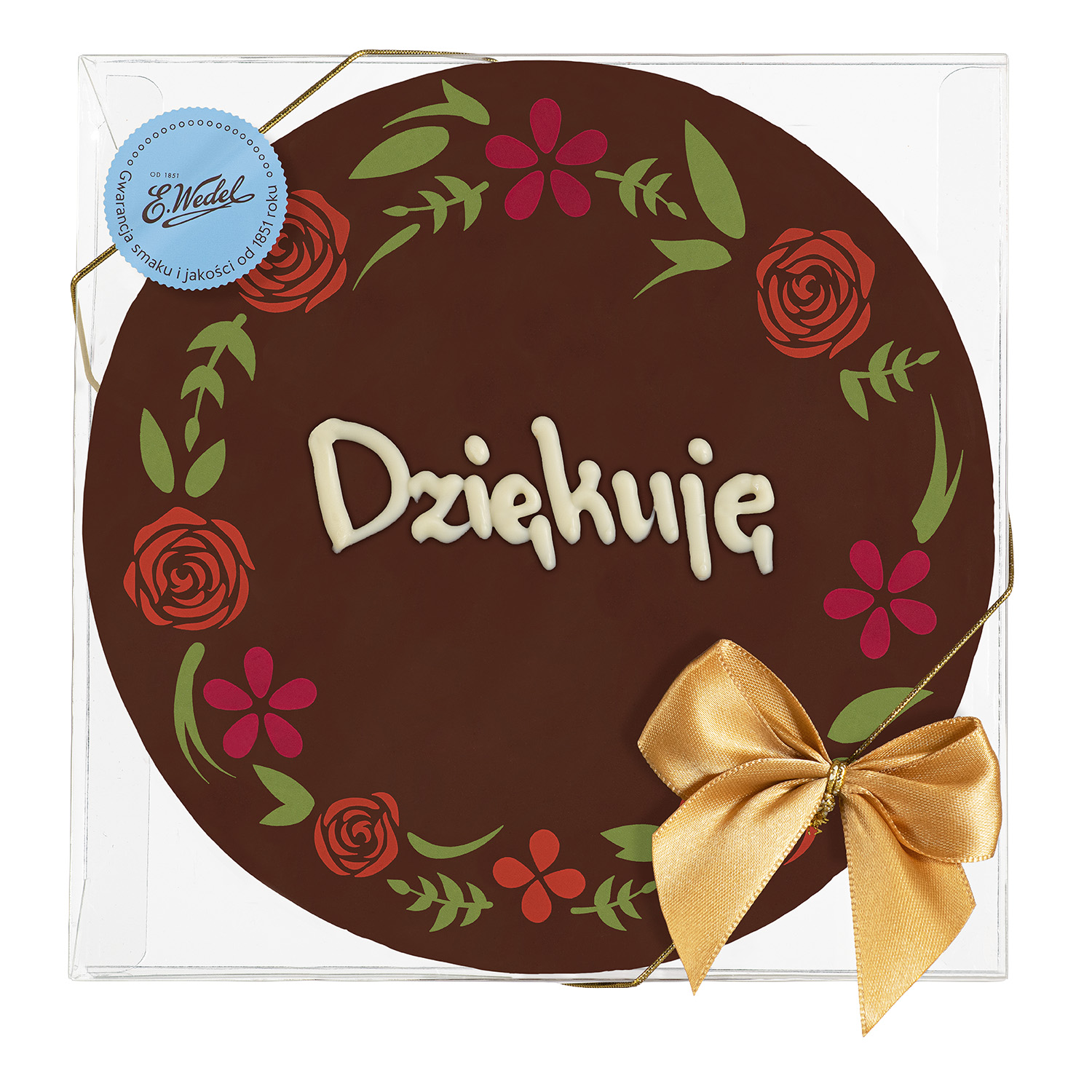 Torcik Wedlowski z napisem „Dziękuję” to połączenie wyjątkowego smaku i pięknej symboliki. Udekorowany wizerunkiem wianka, stanowi elegancki upominek pełen ciepła i wdzięczności. Stworzony z najlepszej czekolady E.Wedel, doskonale sprawdzi się jako słodki sposób na podziękowanie bliskim, współpracownikom czy nauczycielom. Zgodnie z wieloletnią tradycją firmy E.Wedel, każdy Torcik Wedlowski® jest ręcznie dekorowany.