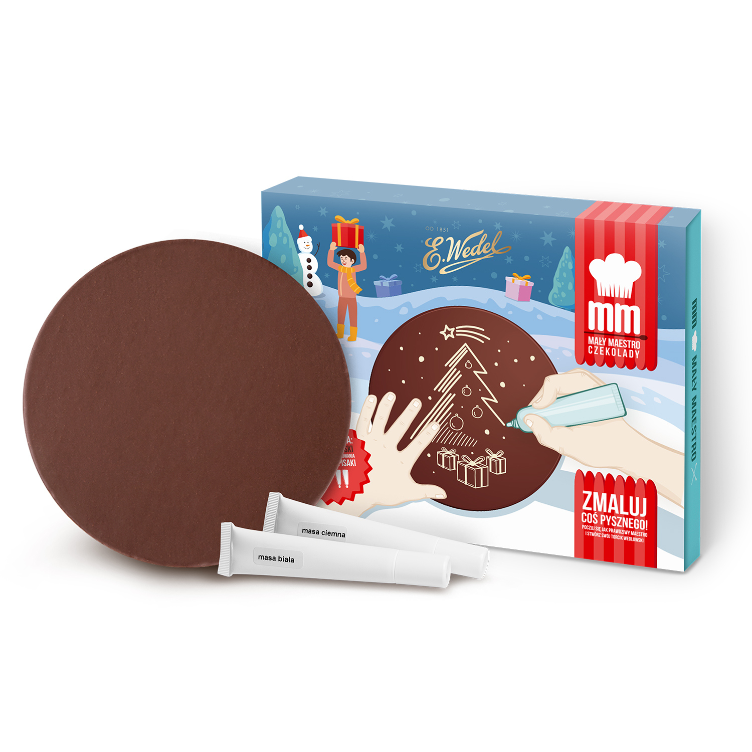 Zestaw Mały Maestro Czekolady zawiera Torcik Wedlowski® bez dekoracji wraz z dwoma Czekopisakami. To przepyszna zabawa i idealny prezent dla małych i nieco większych miłośników czekolady. Taki własnoręcznie udekorowany torcik będzie też świetnym pomysłem na kreatywny prezent. Od teraz każdy może zostać Małym Maestro Czekolady i namalować swój wyjątkowy wzór na Torciku Wedlowskim®.
